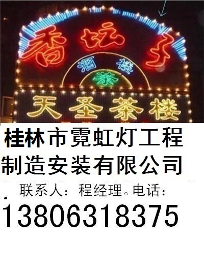 桂林市霓虹燈照明工程制造安裝維修有限公司,聯(lián)系人:程經(jīng)理,電話:13806318375.,專業(yè)制作安裝維修霓虹燈和相關(guān)戶外照明工程,價格:750元/平方米,保修三個月,終身維護,(誠征全國代理商),專業(yè)從事商業(yè)門面,招牌、街道景觀的整體設(shè)計。設(shè)計制作安裝噴繪廣告牌,燈箱,LED燈飾,霓虹燈,電子顯示屏,單立柱,樓體光亮工程等等,是戶外視頻專業(yè)制作安裝公司。更多詳情,登陸:公司網(wǎng)站: http://guilinni.sushang.so/,,,,,桂林市霓虹燈照明工程制造安裝維修有限公司在威海市區(qū),文登區(qū),榮成市,乳山市及煙臺芝罘、福山、牟平、萊山4個區(qū)及長島縣,龍口、萊陽、萊州、蓬萊、招遠(yuǎn)、棲霞、海陽,,青島,濰坊,淄博,德洲, 東營,濟南,天津,北京, 大連, 沈陽, 上海,.蘇州, 無錫市,臨沂,本溪,衡水,長春,哈爾濱,太原,徐州,合肥,鄭州,武漢,杭州,南昌,長沙,泉州,廣州,西安,成都,蘭州,貴陽,昆明,呼和浩特,重慶,日照,丹東,石家莊,吉林,齊齊哈爾,大同,常州,蕪湖,開封,黃石,寧波,贛州,常德,廈門,深圳,咸陽,自貢,天水,六盤水, 曲靖, 包頭,桂林市等地制作安裝了大量優(yōu)質(zhì)的戶外照明廣告牌,獲得客戶們的贊譽和褒獎。我公司注重將嶄新的照明科技產(chǎn)品運用到工程當(dāng)中,設(shè)計突出客戶行業(yè)特點,起到很好的宣傳效果,突出了客戶正面形象,為客戶們帶來良好的廣告效果和經(jīng)濟效益。霓虹燈是戶外廣告的主要形式之一,為企業(yè)和單位主體建筑在夜幕中增加色彩和動感,展現(xiàn)公司企業(yè)積極向上開拓進取的精神風(fēng)貌,時代感強烈。同時為所在街道的夜晚增加靚麗的風(fēng)景,特別是重大節(jié)慶日的夜晚,更能體現(xiàn)會說話,有感情的建筑。裝飾霓虹燈時,設(shè)計安裝的畫面體現(xiàn)公司,單位性質(zhì)可以很好的提升企業(yè)形象,為客戶留下深刻的印象,為擴大業(yè)務(wù)打下良好的基礎(chǔ)。, 霓虹燈一般分兩大類: 1、靜態(tài)燈,顏色固定,各部分不變化;