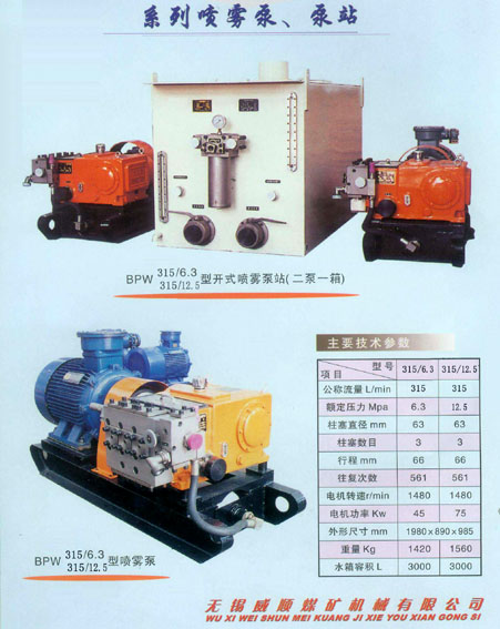 我公司(原無(wú)錫市威順煤礦機(jī)械廠)創(chuàng)建于一九七一年,是研制生產(chǎn)“威順”牌煤礦機(jī)械配套產(chǎn)品——綜合機(jī)械化采煤用BRW系列乳化液泵站、BPW噴霧泵站和各類綜機(jī)配件、液壓元件的專業(yè)公司 ,是全國(guó)煤炭行業(yè)機(jī)電設(shè)備定點(diǎn)生產(chǎn)企業(yè)、全國(guó)煤礦綜機(jī)配件定點(diǎn)生產(chǎn)網(wǎng)絡(luò)單位、全國(guó)煤礦專用設(shè)備配件定點(diǎn)生產(chǎn)單位。公司自一九九七年起被評(píng)為江蘇省高新技術(shù)企業(yè),已通過(guò)ISO9001:2000質(zhì)量管理體系認(rèn)證。BRW系列乳化液泵站獲得國(guó)家煤炭安全監(jiān)察局頒發(fā)的安全標(biāo)志準(zhǔn)用證,并被行業(yè)專家認(rèn)定達(dá)到國(guó)內(nèi)領(lǐng)先水平。其中BRW400/31.5X4A型乳化液泵站被江蘇省認(rèn)定為高新技術(shù)產(chǎn)品。近期開(kāi)發(fā)的BRW315-500/31.5-37X4A智能化管理乳化液泵站已廣泛使用。該產(chǎn)品是目前同行業(yè)流量、壓力、功率最大的泵站,能滿足煤礦大缸徑重型支架快速升降、推溜和高產(chǎn)、高效采煤的需要。
