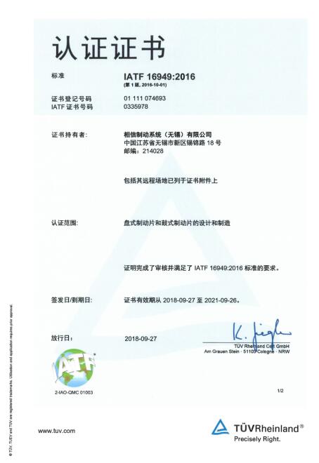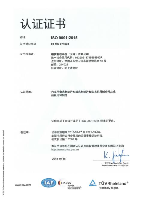 相信制動系統(tǒng)(無錫)有限公司