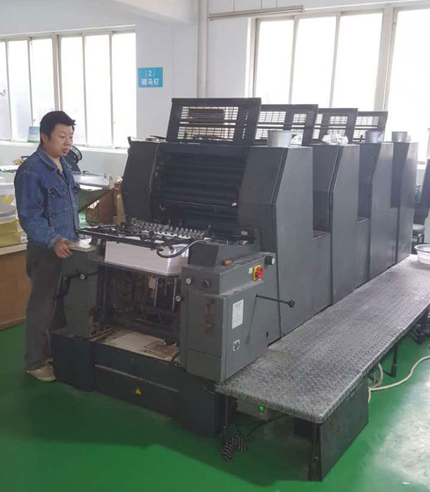 膠印主要設備有:日本進口日本利優(yōu)比四開四色快印機一臺、進口八開四色海德堡商務印刷機一臺、國產冠華票據印刷機一臺(帶打碼)、海德堡平張紙全自動模切機一臺、全張切紙機兩臺、四開折頁機兩臺、騎馬釘書機兩臺、全張壓紋機一臺、另有燙金機、壓痕機、打孔機、雞眼機、壓圈機、斷帶機、膠水機等印前印后設備十余臺;