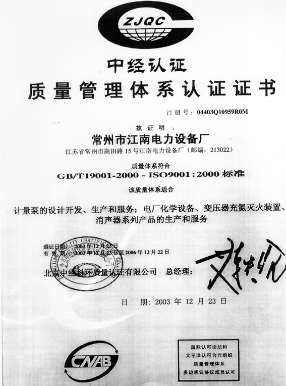 質(zhì)量管理體系認(rèn)證證書(shū)-