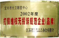 榮譽(yù)證書—打假維權(quán)無投訴規(guī)范企