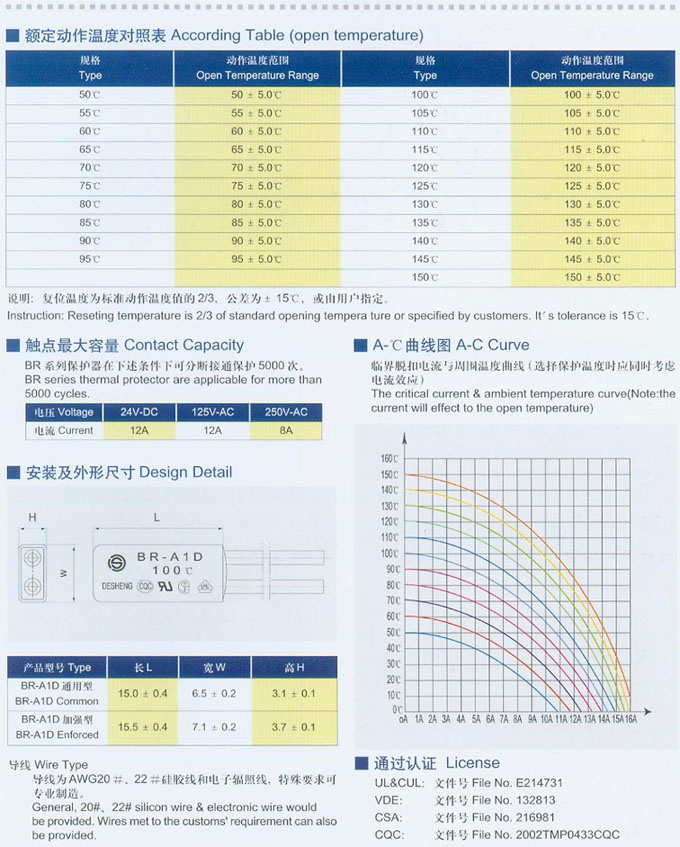 產(chǎn)品名稱:BR-A1D通用型和加強(qiáng)型系列熱保護(hù)器2
