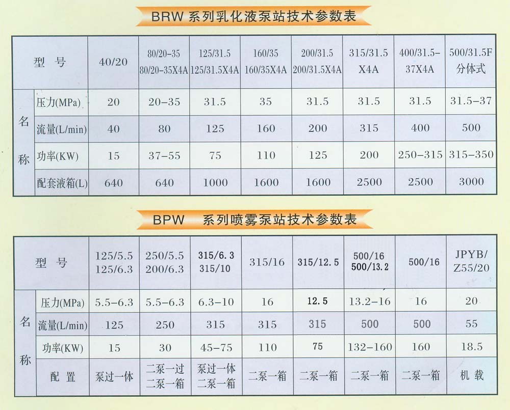BRW系列乳化液泵站,BPW系列噴霧泵站技術(shù)參數(shù)表