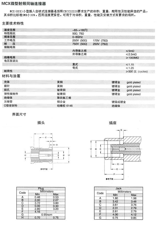產(chǎn)品名稱:MCX型微型射頻同軸連接器