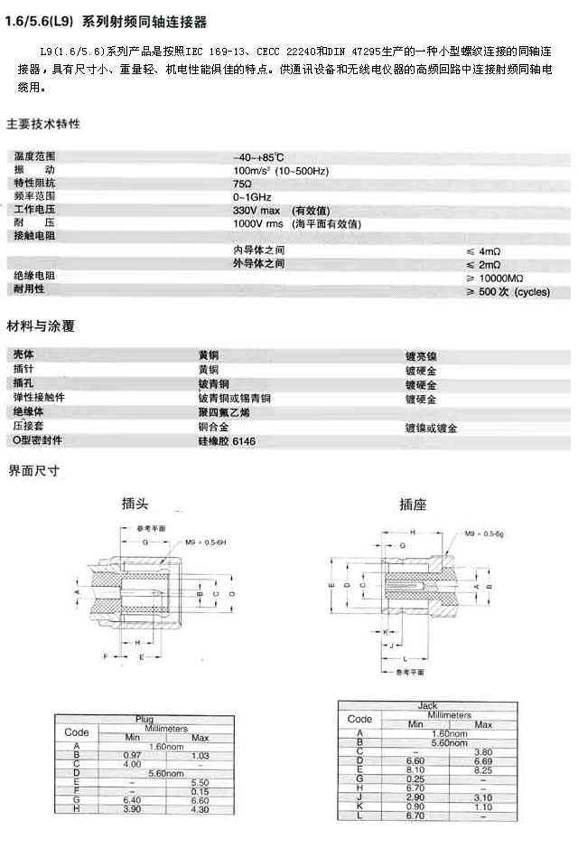 1.6/5.6(L9)型射頻同軸連接器