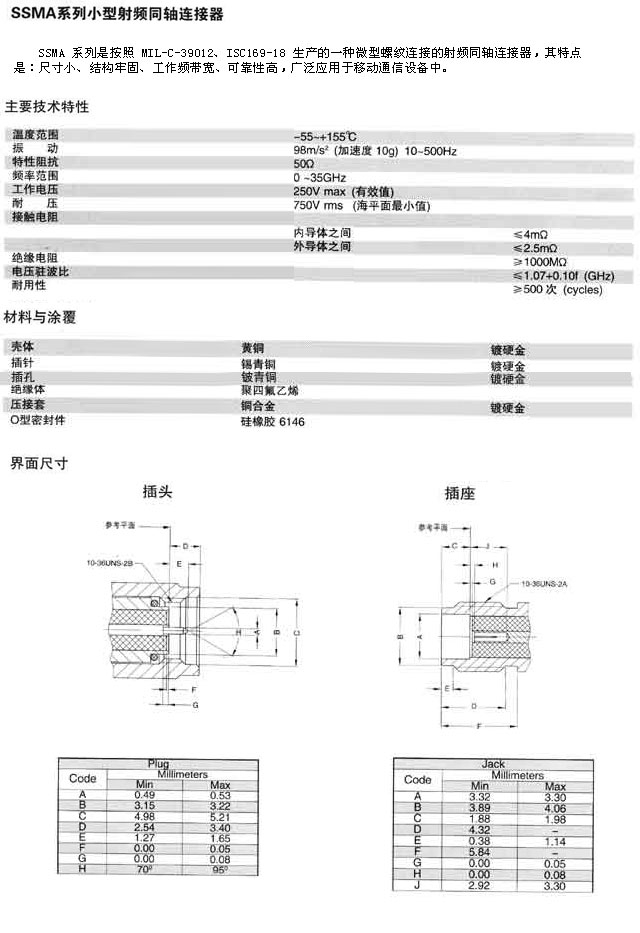 產(chǎn)品名稱:SSMA型小型射頻同軸連接器