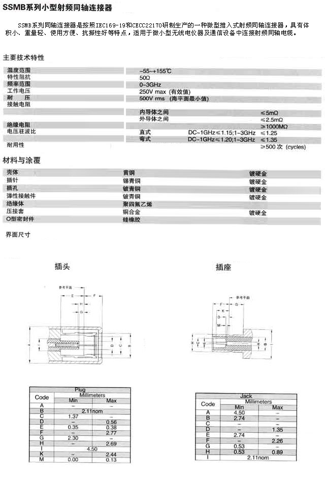 產(chǎn)品名稱:SSMB型小型射頻同軸連接器