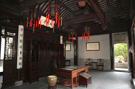 榜眼府第在下塘街,為林則徐弟子、近代政論家馮桂芬故居。馮桂芬是清道光二十年(1840)一甲二名進士,故邑人稱其宅為“榜眼府第”。榜眼府第為前宅后園結(jié)構(gòu),占地近十畝,是典型的清代園林建筑風格!敖先瘛(磚雕、木雕、石雕)為其主要特色;▓@以池為中心,亭、軒、廊、榭、橋和黃石假山散落其間,高低錯落,綠樹掩映,充滿了詩情畫意。