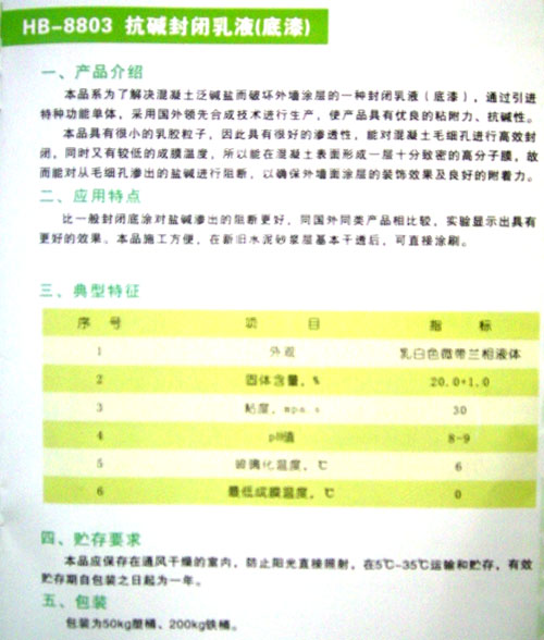 產(chǎn)品名稱:HB-8803 抗堿封閉乳液(底漆)