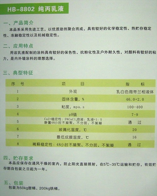產(chǎn)品名稱:HB-8802 純丙乳液