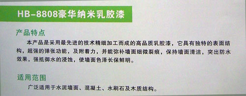 產(chǎn)品名稱:HB-8808 豪華納米乳膠漆