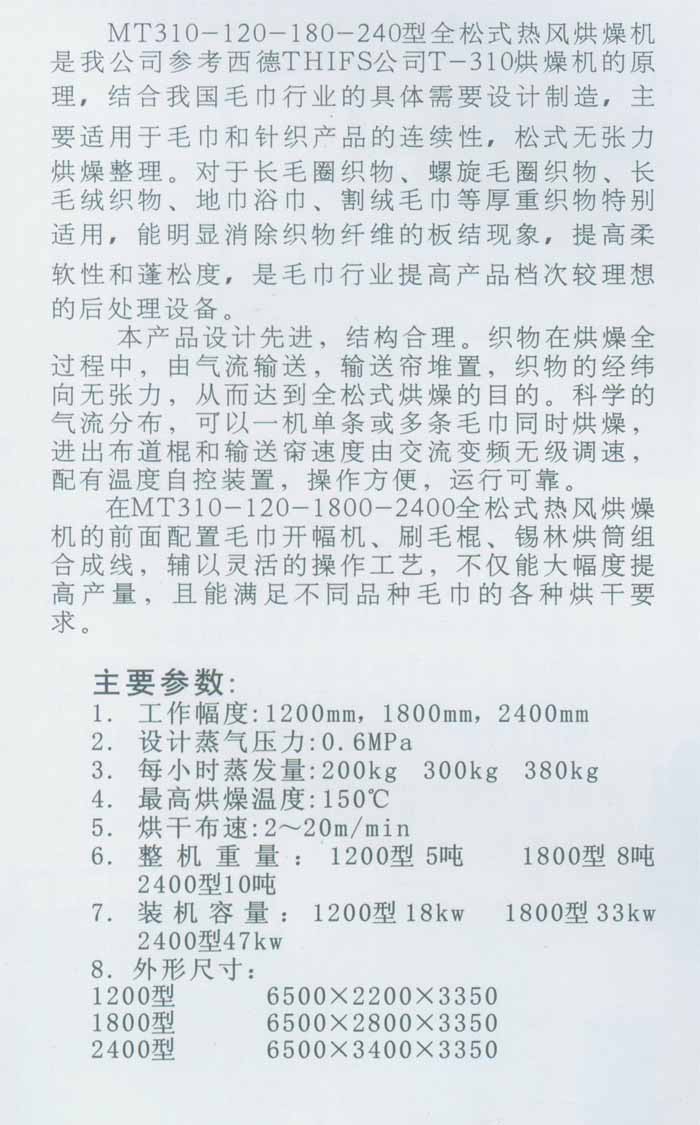 產(chǎn)品名稱:MT310-120-180-240型全松式熱風烘燥機