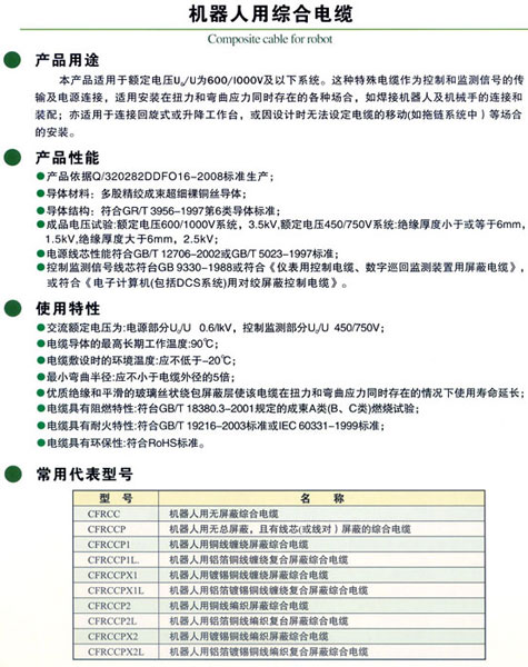 產(chǎn)品名稱:機器人用綜合電纜