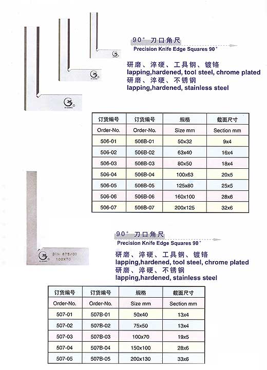 產(chǎn)品名稱:90°刀口角尺 Precision Knife Edge Squares 90°