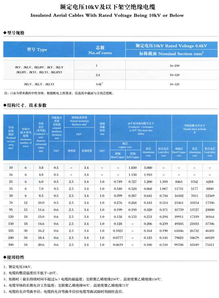 額定電壓10kv及以下架空絕緣電纜