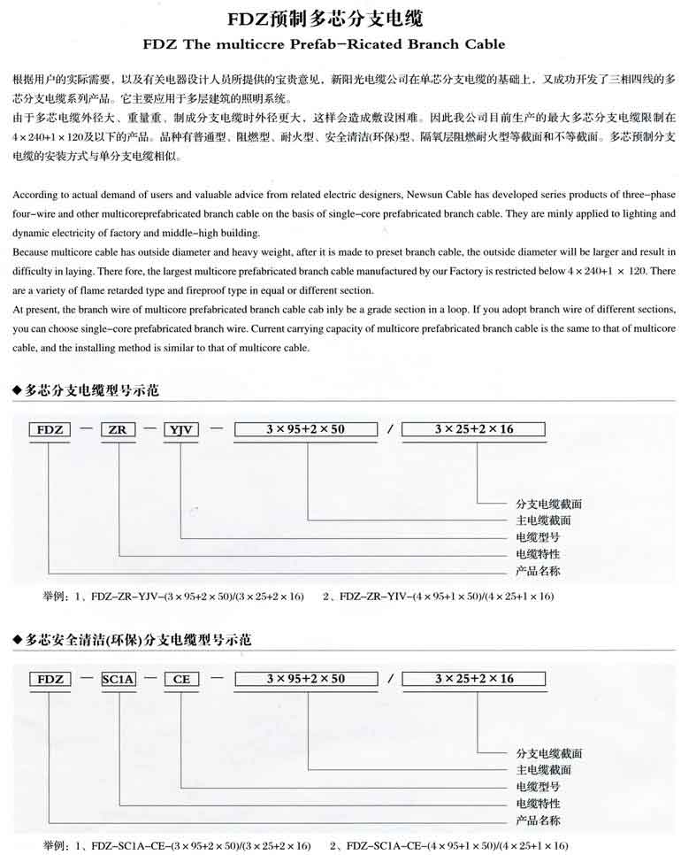 產(chǎn)品名稱:FDZ預(yù)制多芯分支電纜