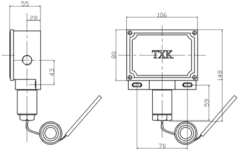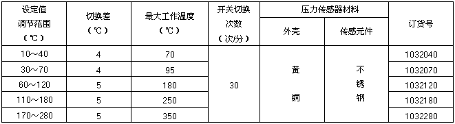 溫度控制器為直頂式結(jié)構(gòu),溫包采用毛細(xì)管溫包傳感器,可用于流動的中性氣體和介質(zhì),如果介質(zhì)為腐蝕性,安裝時可選用不銹鋼溫包保護(hù)套套在銅制溫包外。