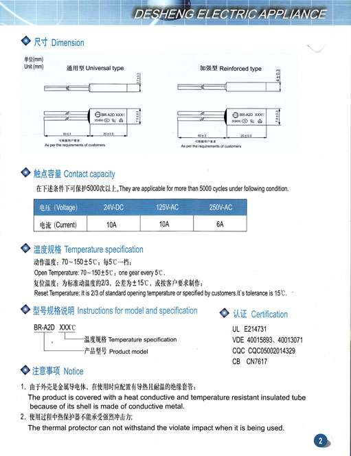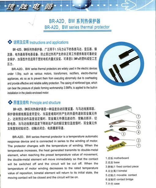 產(chǎn)品名稱:BR-A2D\BW系列熱保護(hù)器