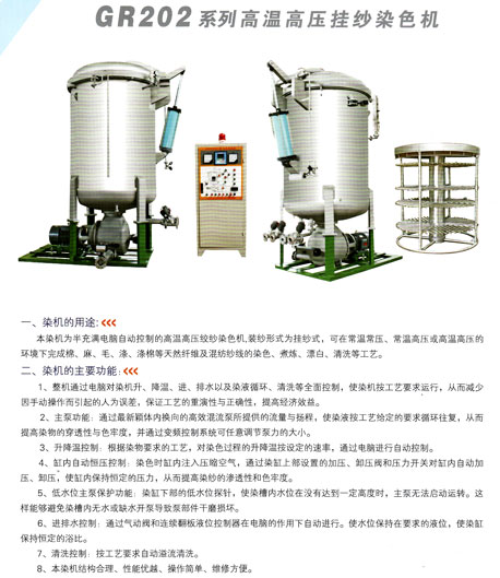 產(chǎn)品名稱:GR202系列 高溫高壓掛紗染色機