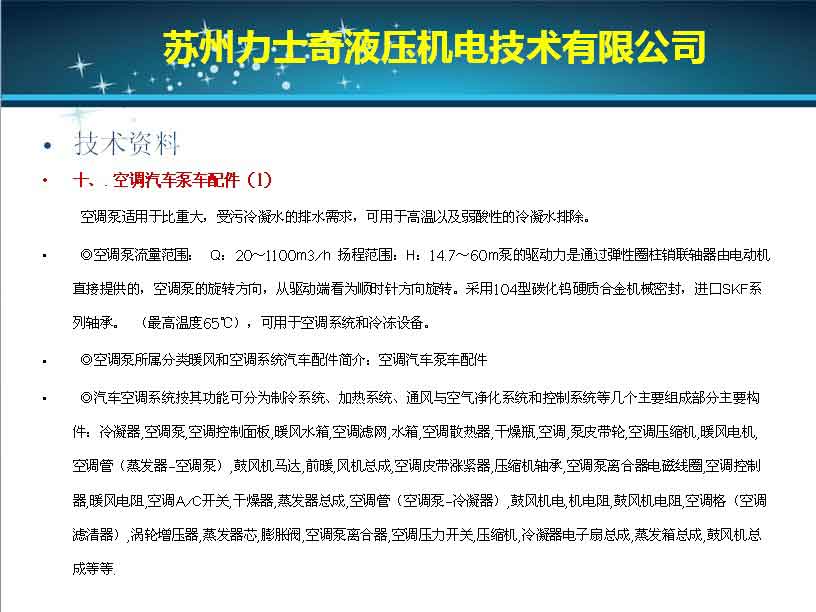 產(chǎn)品名稱:空調(diào)汽車泵車配件