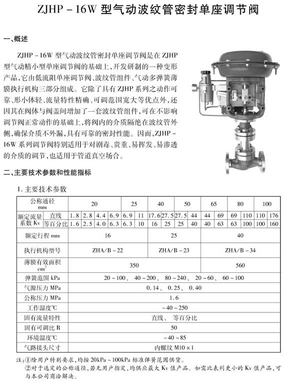 產(chǎn)品名稱:ZJHP-16W型氣動波紋管密封單座調(diào)節(jié)閥