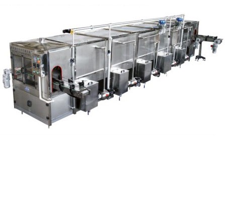 本機(jī)設(shè)有5個(gè)溫區(qū),溫差梯度小,既能保證良好的殺菌效果,又可減少破瓶率,溫區(qū)的建立采用循環(huán)水噴淋方式有效地節(jié)約了熱能。即將預(yù)熱槽與冷卻槽按其溫差合理地連桶,交換循環(huán)使用,充分利用了余熱,又節(jié)約了水的用量。該機(jī)采用巴氏殺菌原理完全符合飲料、啤酒殺菌工藝要求。