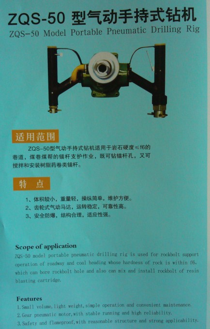 產(chǎn)品名稱:ZQS-50型氣動(dòng)手持式鉆機(jī)