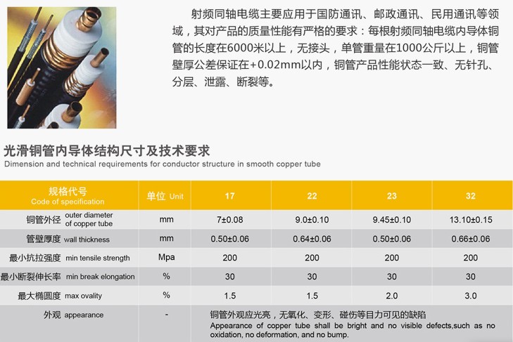產(chǎn)品名稱:射頻同軸電纜用銅管