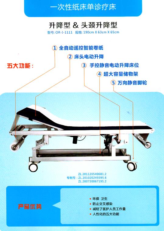 產(chǎn)品名稱:一次性紙床單診療床