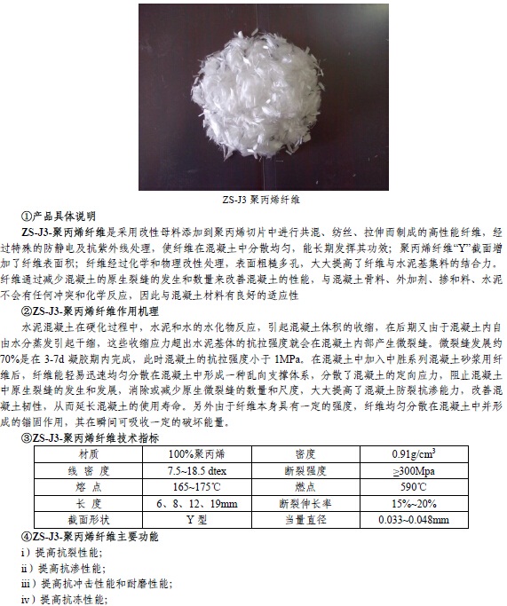 產品名稱:ZS-J3 聚丙烯纖維