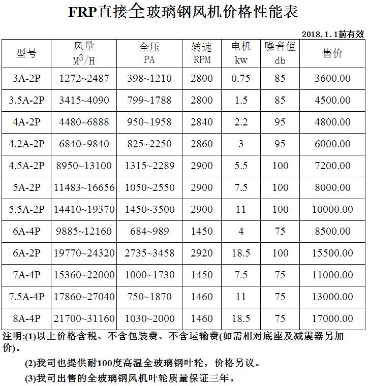 FRP直接全玻璃鋼風(fēng)機(jī)價(jià)格性能表