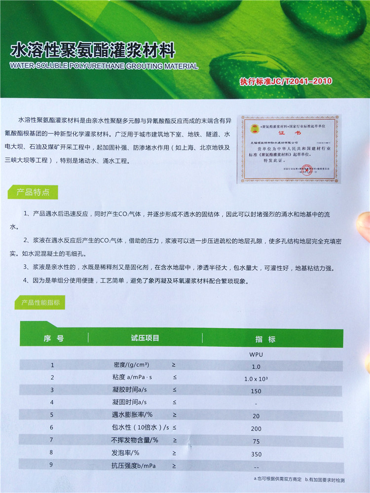 水溶性聚氨酯灌漿材料...