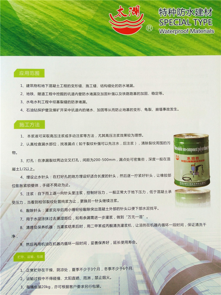 產(chǎn)品名稱(chēng):水溶性聚氨酯灌漿材料
