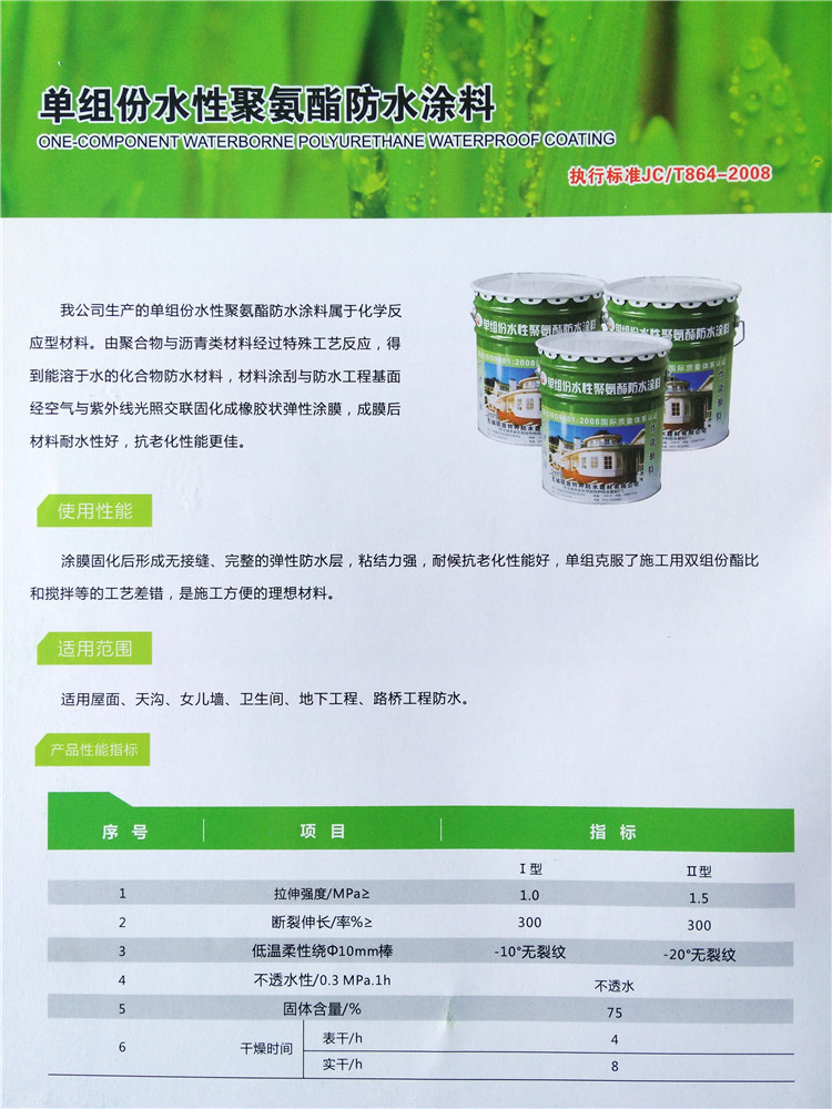 產(chǎn)品名稱:單組份水性聚氨酯防水涂料
