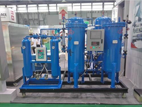 sl制氧機分離空氣主要由兩個填滿分子篩的吸附塔組成,在常溫條件下,將壓縮空氣經(jīng)過過濾,除水干燥等凈化處理后進入吸附塔,在吸附塔中空氣中的氮氣等被分子篩所吸附,而使氧氣在氣相中得到富集,從出口流出貯存在氧氣緩沖罐中,而在另一塔已完成吸附的分子篩被迅速降壓,解析出已吸附的成分,兩塔交替循環(huán),即可得到純度為≥90%的廉價的氧氣。整個系統(tǒng)的閥門自動切換均由一臺電腦自動控制。