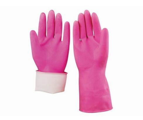 粉色噴絨家用乳膠手套...