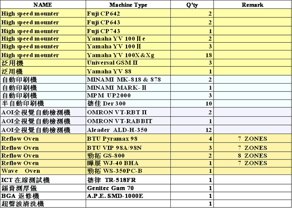 主要設備清單...